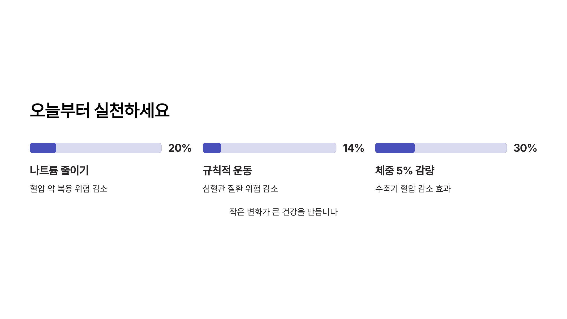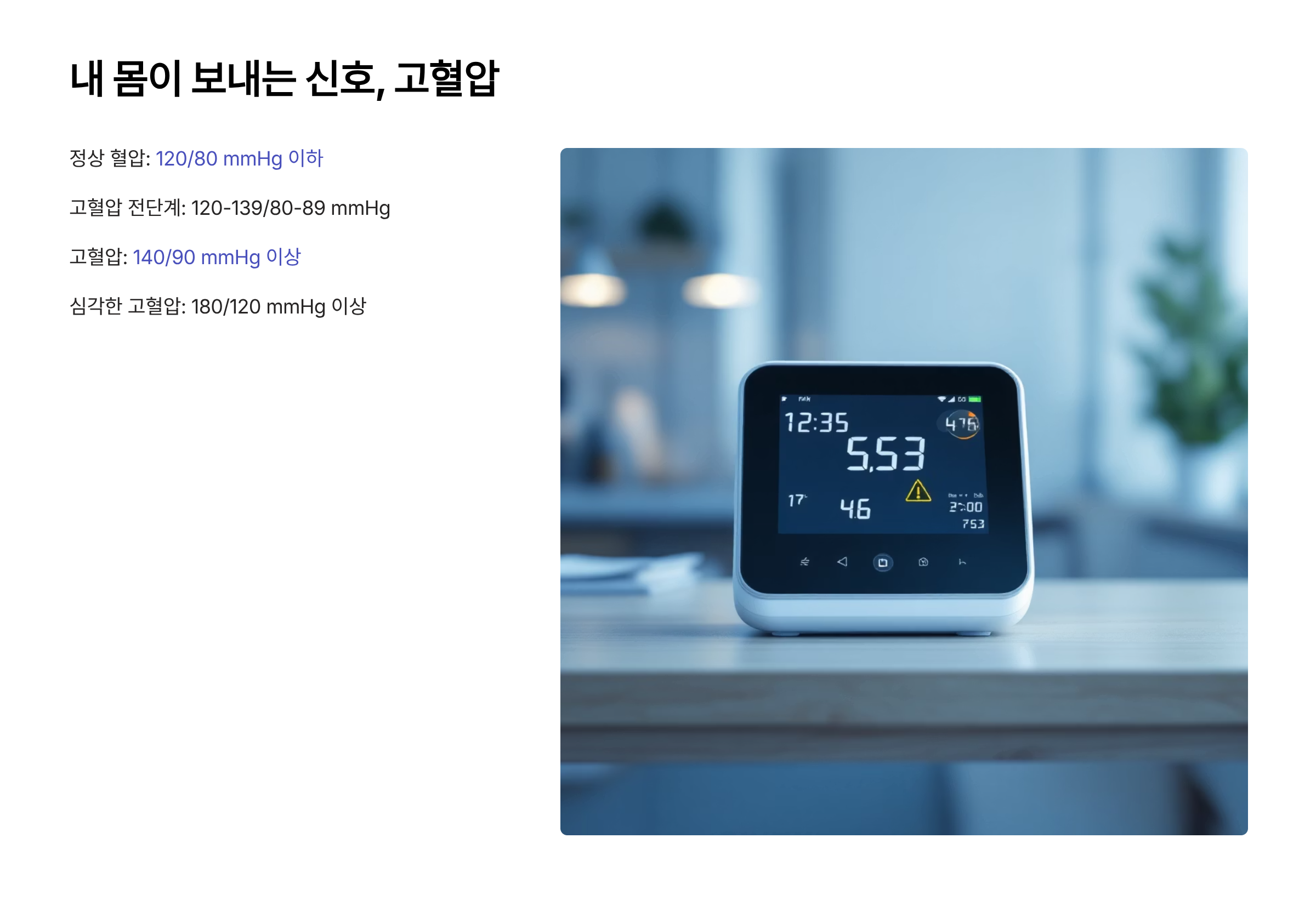 다행히 고혈압은 생활습관 개선과 적절한 관리를 통해 충분히 조절할 수 있는 질환이에요. 약물치료와 함께 식습관 개선, 규칙적인 운동, 스트레스 관리를 병행하면 혈압을 정상 범위로 유지할 수 있답니다. 오늘은 일상에서 실천할 수 있는 고혈압 관리법을 자세히 알아보도록 할게요. 😊