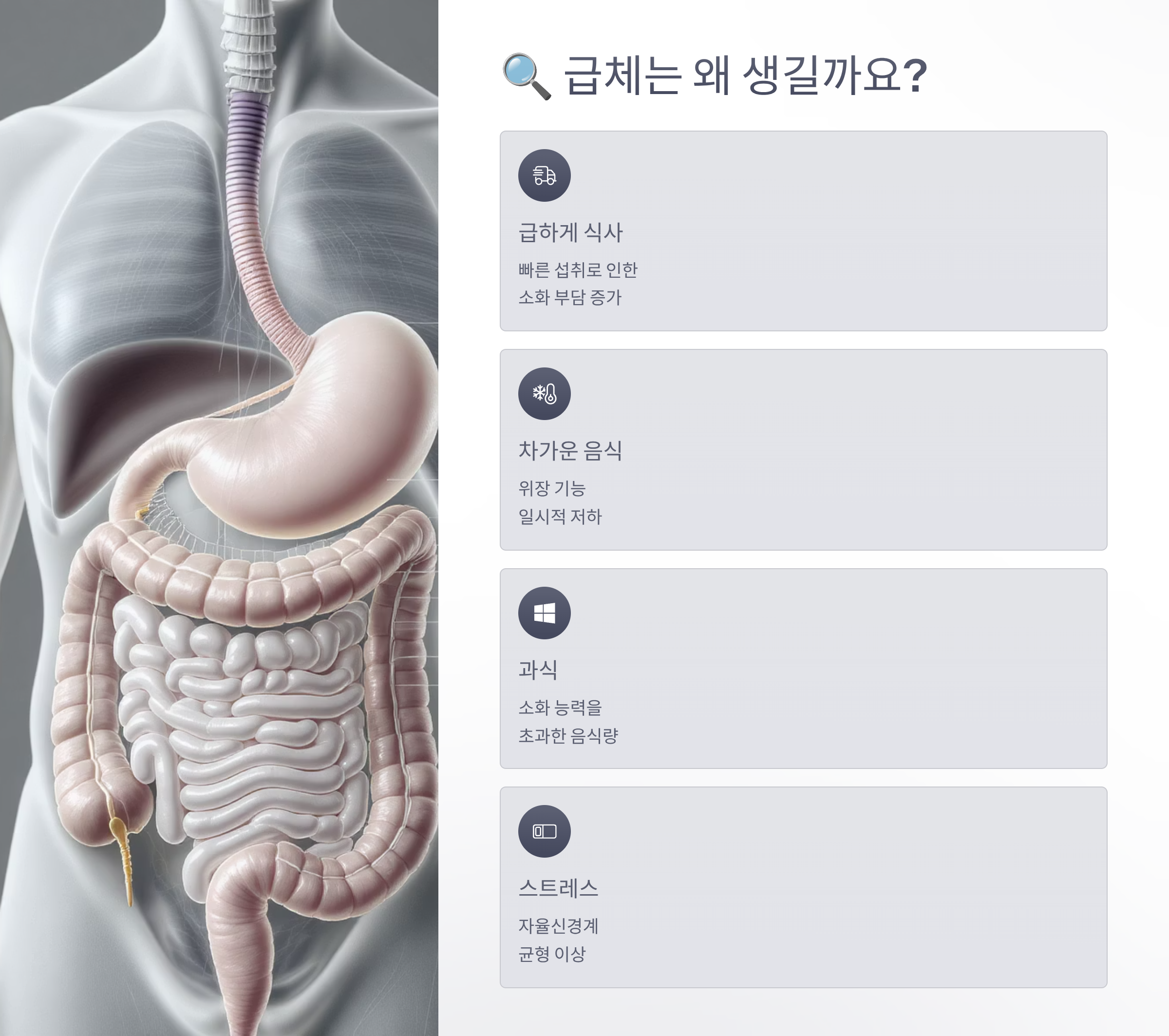 급체는 누구나 한 번쯤 경험하는 소화기 증상으로, 음식물이 제대로 소화되지 않아 발생하는 급성 소화불량이에요. 특히 바쁜 현대인들이 급하게 식사를 하거나 과식했을 때 자주 나타나는데, 적절한 대처를 하지 않으면 일상생활에 큰 지장을 줄 수 있답니다. 오늘은 급체 증상을 빠르게 해결할 수 있는 실전 대처법을 자세히 알아볼게요! 😊