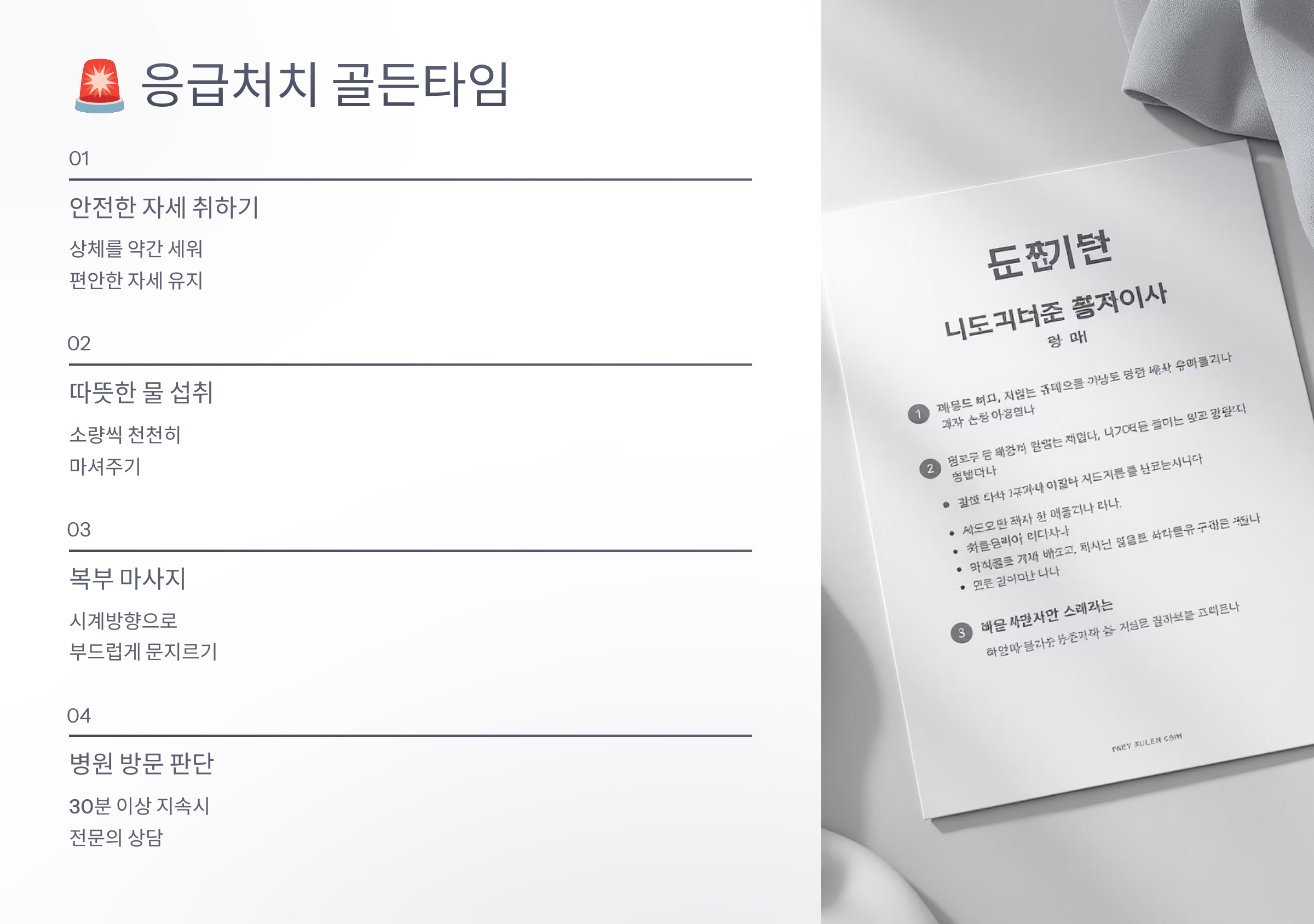 | 심화 | 3시간 이상 | 구토, 복통 | 약물 복용, 병원 방문 |