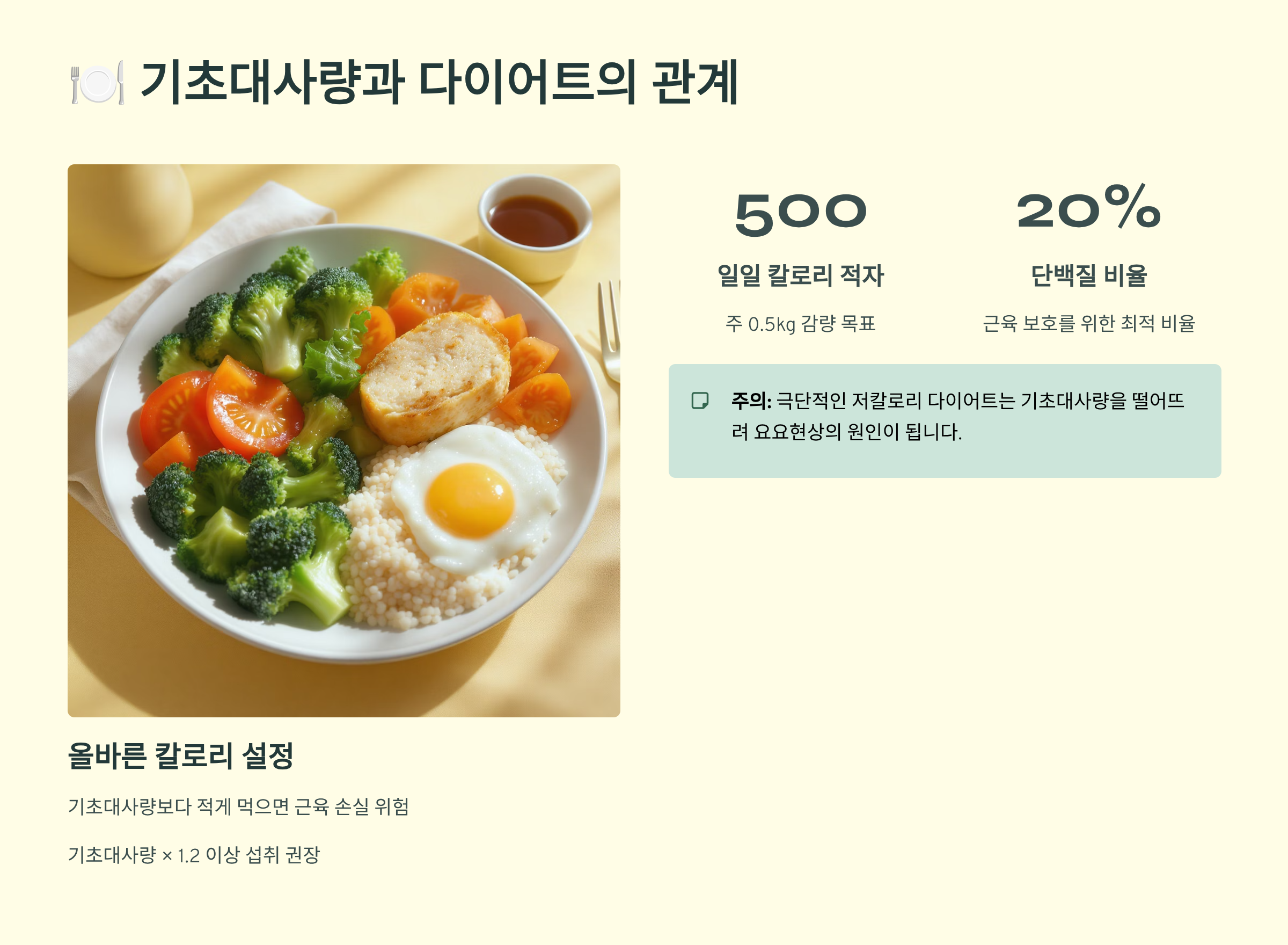 다이어트의 성공 열쇠는 기초대사량을 이해하는 것에서 시작해요. 많은 사람들이 무작정 굶거나 극단적인 저칼로리 다이어트를 하는데, 이는 오히려 기초대사량을 떨어뜨려 요요현상을 일으켜요. 기초대사량이 떨어지면 조금만 먹어도 살이 찌는 체질로 변하게 되죠.