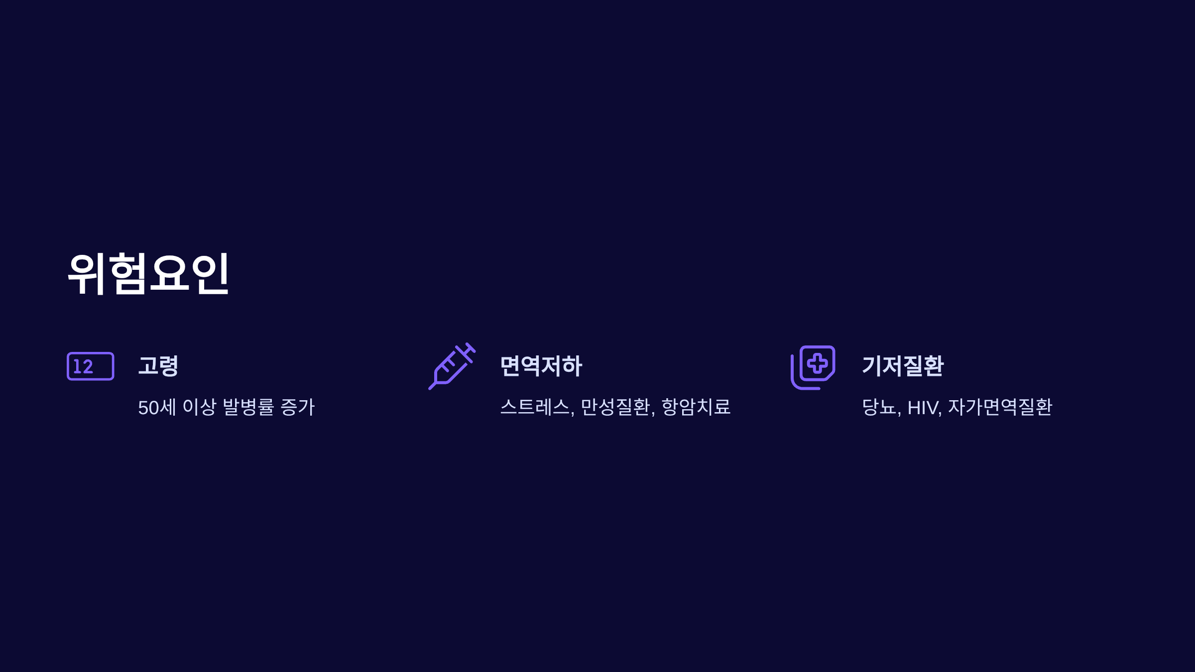 면역력 저하의 가장 큰 원인은 노화예요. 나이가 들수록 세포 매개 면역력이 감소하기 때문에 50세 이상에서 대상포진 발병률이 급격히 증가해요. 실제로 85세 이상 노인의 경우 절반 이상이 대상포진을 경험한다고 해요. 하지만 최근에는 젊은 층에서도 발병률이 증가하고 있는데, 이는 스트레스와 과로가 주요 원인이에요.