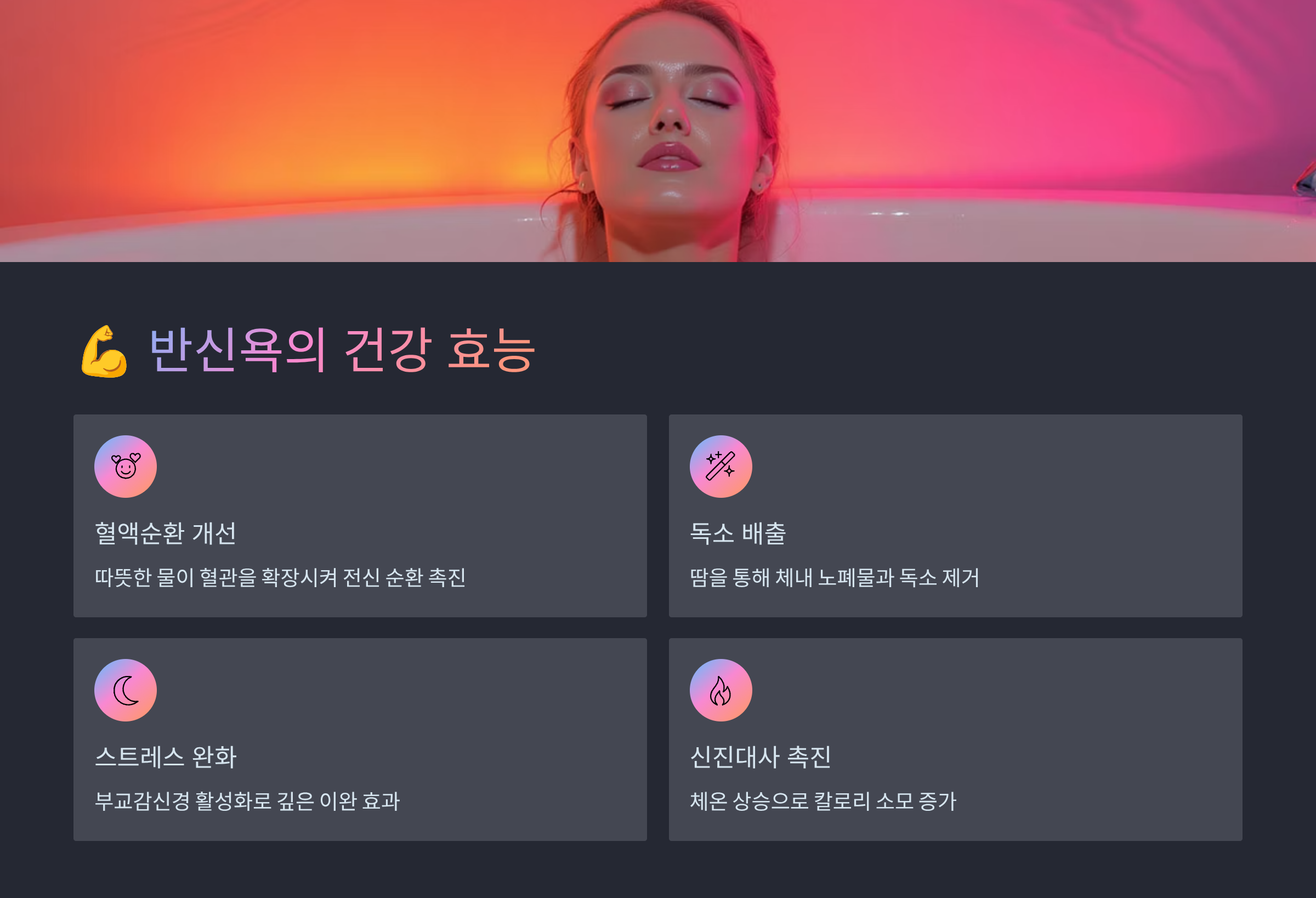 매일 20분의 투자로 건강하고 활기찬 삶을 시작하세요! 반신욕은 단순한 목욕이 아닌, 몸과 마음을 치유하는 최고의 셀프케어 방법입니다. 오늘 저녁부터 시작해 보는 건 어떨까요? 🛁✨