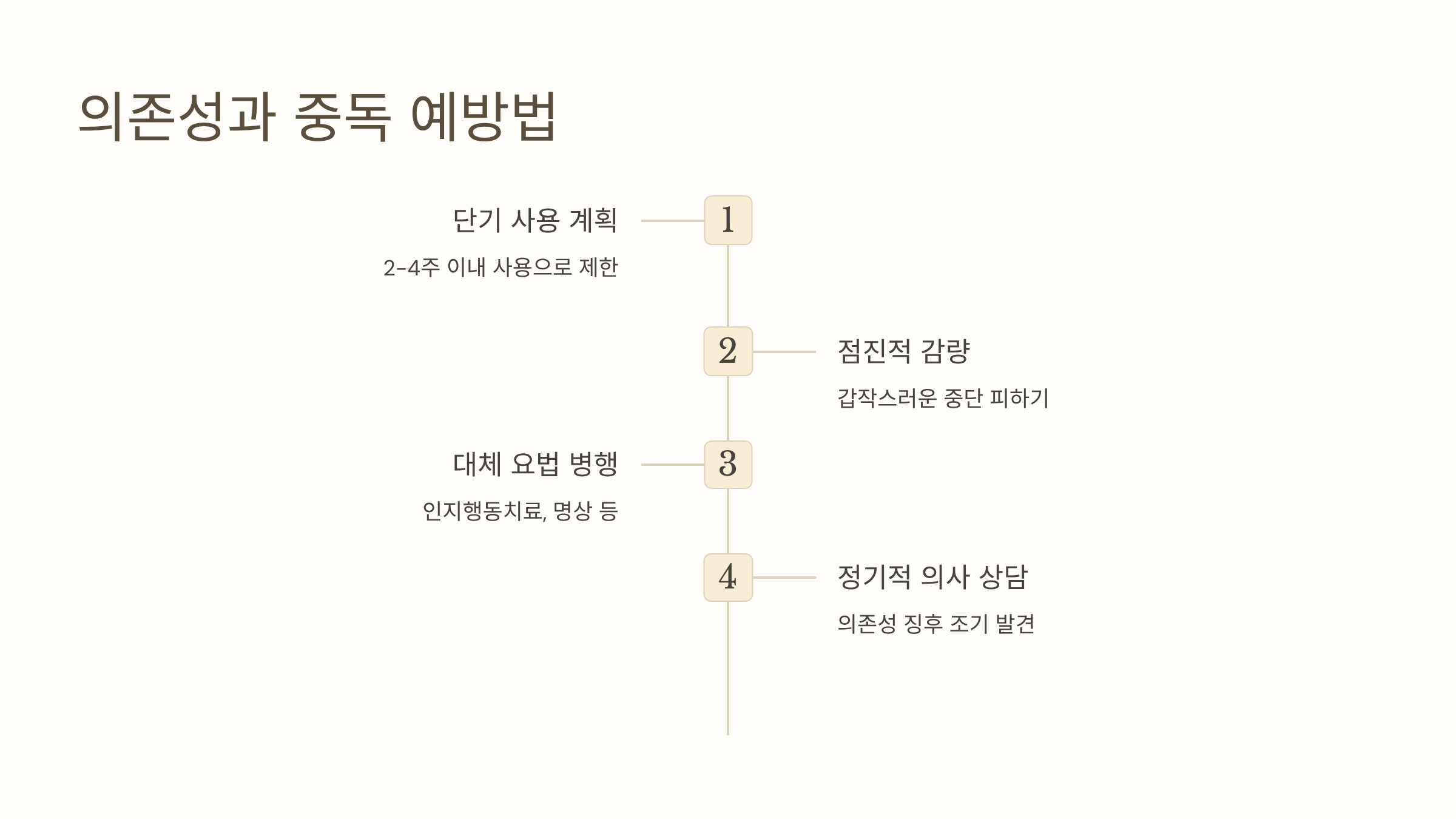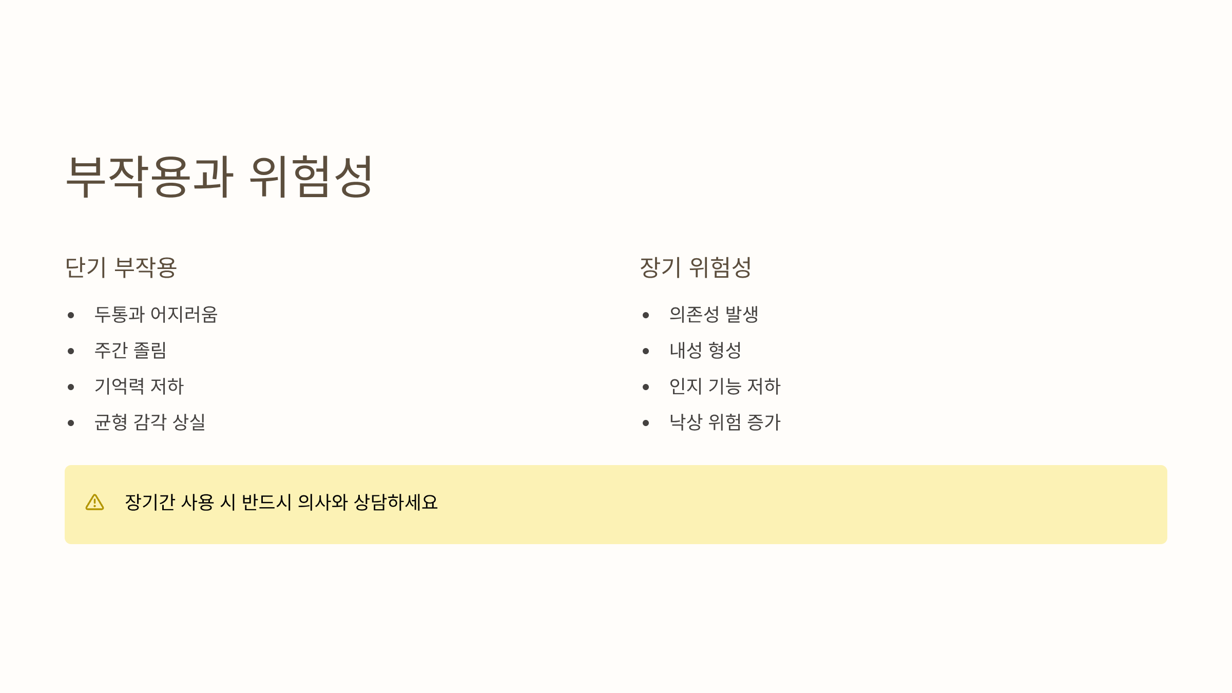 | 금단 증상 | 중단 시 악화 | 점진적 감량 |