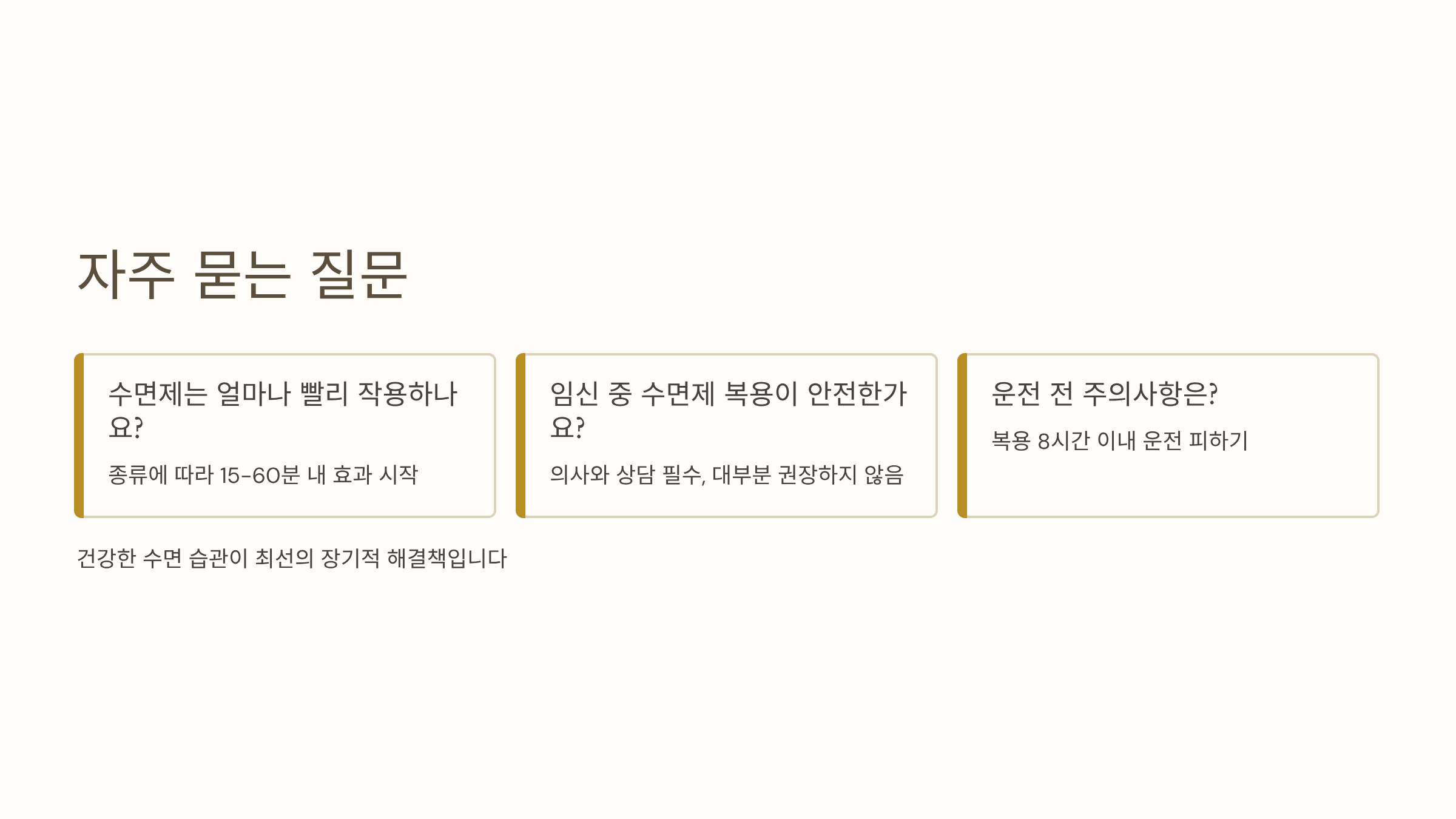 | 멜라토닌 | 1-3mg | 30-60분 | 주간 졸음 가능 |