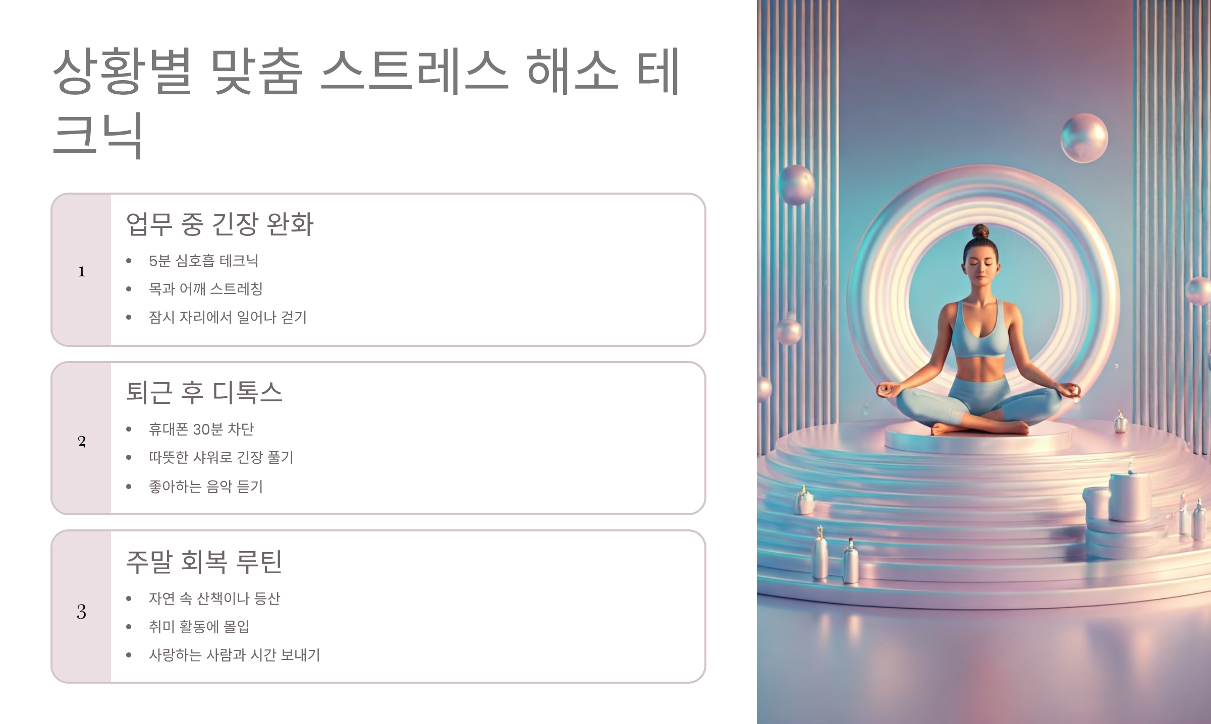 🎯 상황별 맞춤 스트레스 해소 테크닉