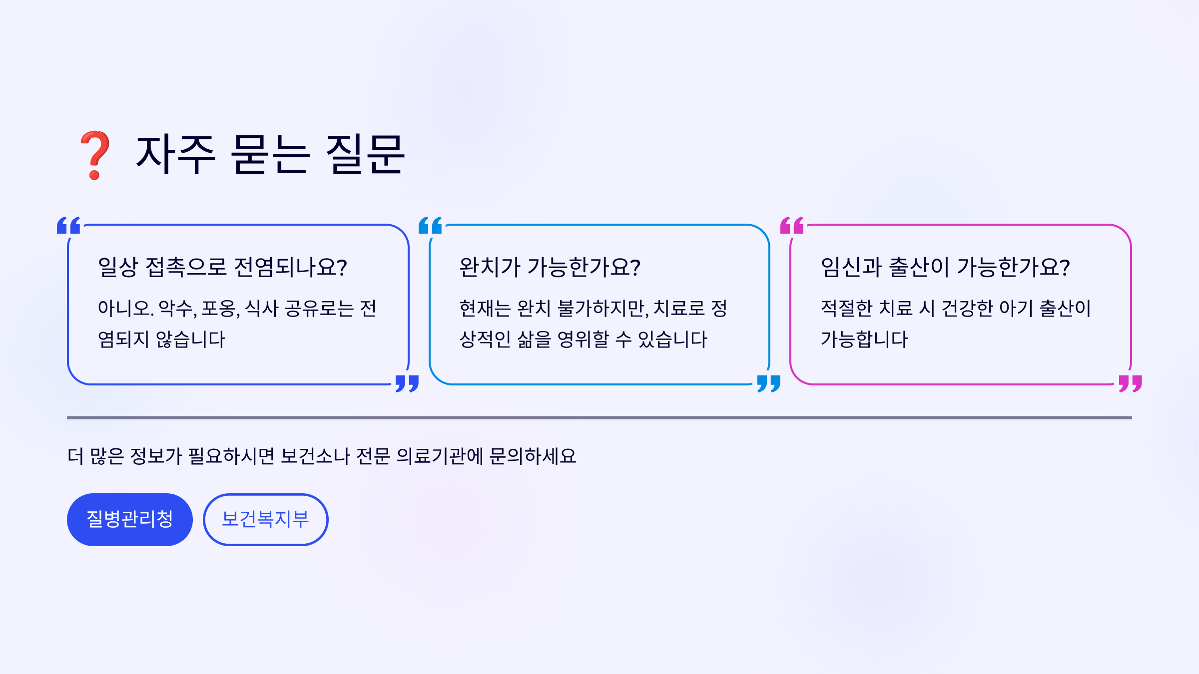 ⚠️ 면책조항: 이 글은 일반적인 정보 제공을 목적으로 작성되었으며, 의학적 조언을 대체할 수 없습니다. HIV 감염이 의심되거나 증상이 있는 경우 반드시 의료 전문가와 상담하세요. 개인의 건강 상태에 따라 적절한 검사와 치료 방법이 다를 수 있습니다.