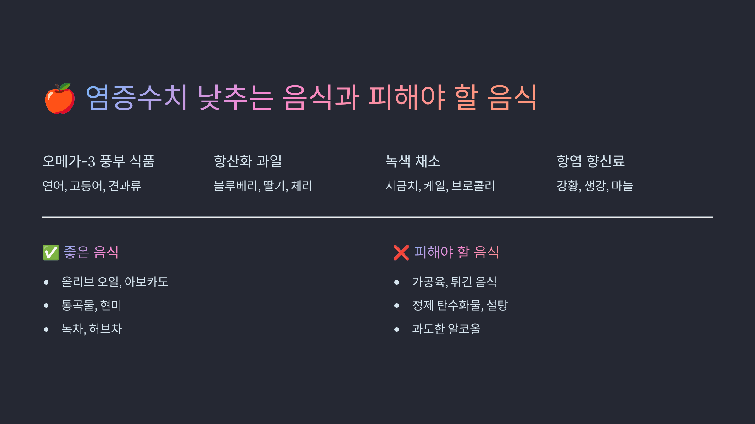 🍎 염증수치 낮추는 음식과 피해야 할 음식