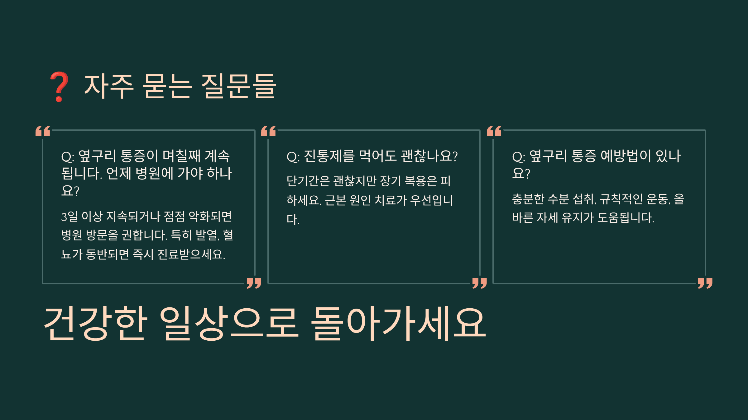 Q8. 옆구리 통증이 만성화되면 어떻게 관리해야 하나요?