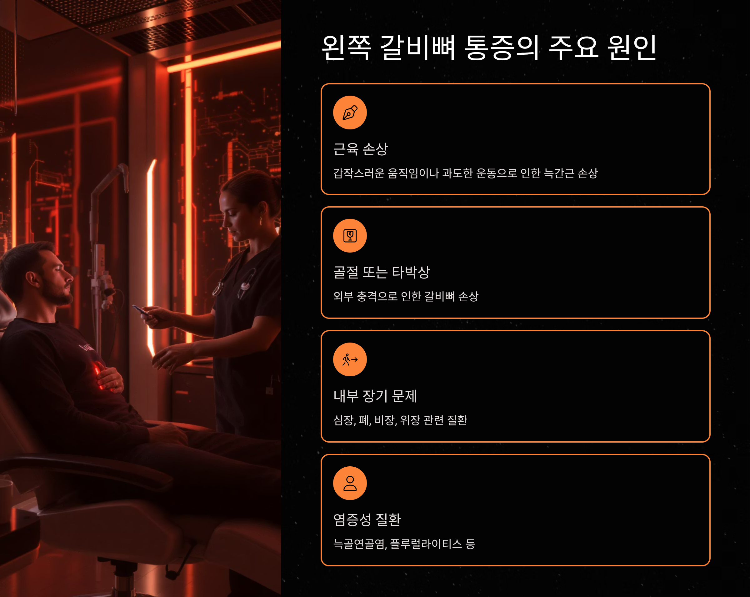 🔍 왼쪽 갈비뼈 통증의 주요 원인