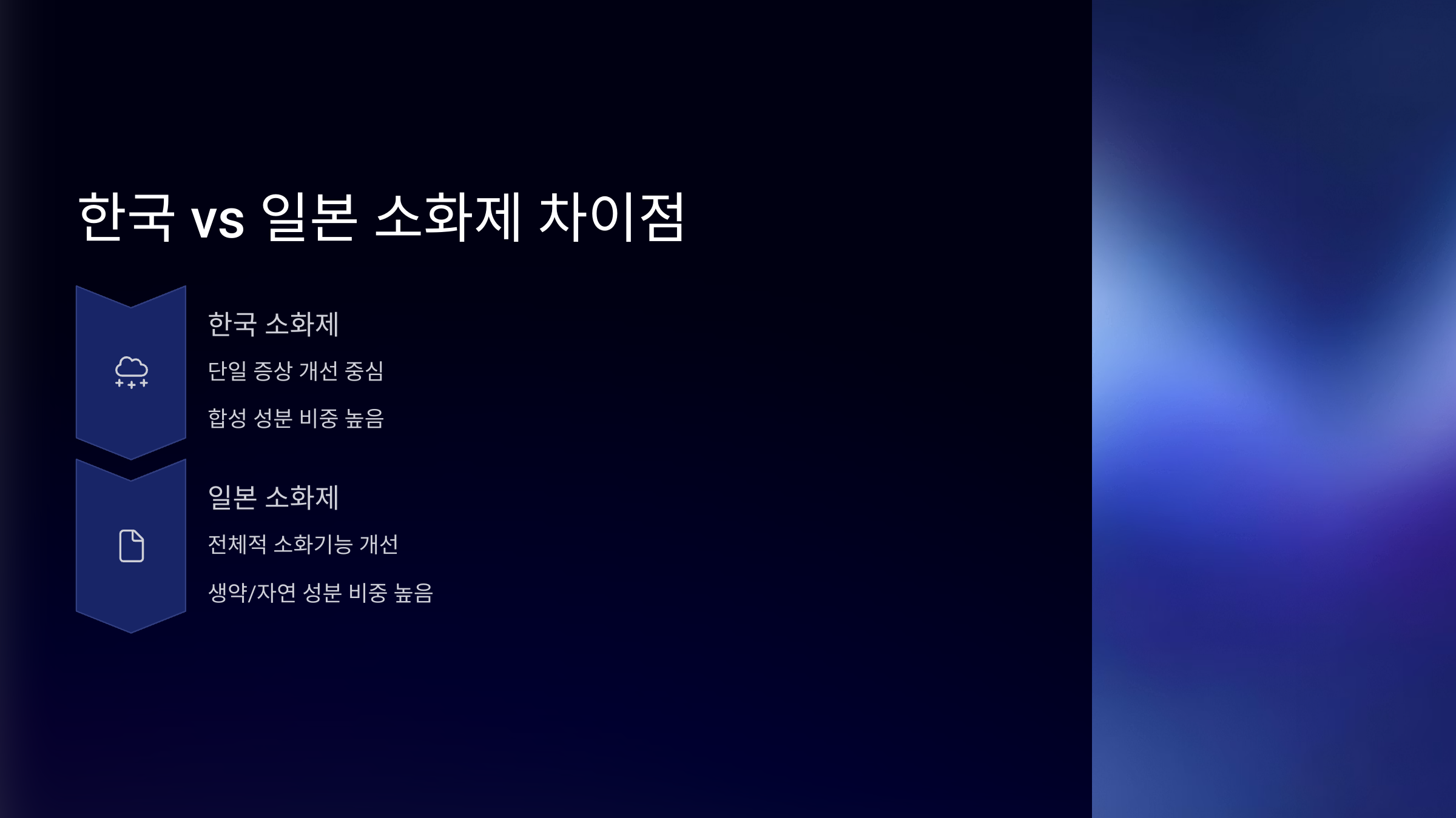 🇰🇷🇯🇵 한일 소화제 특징 비교표