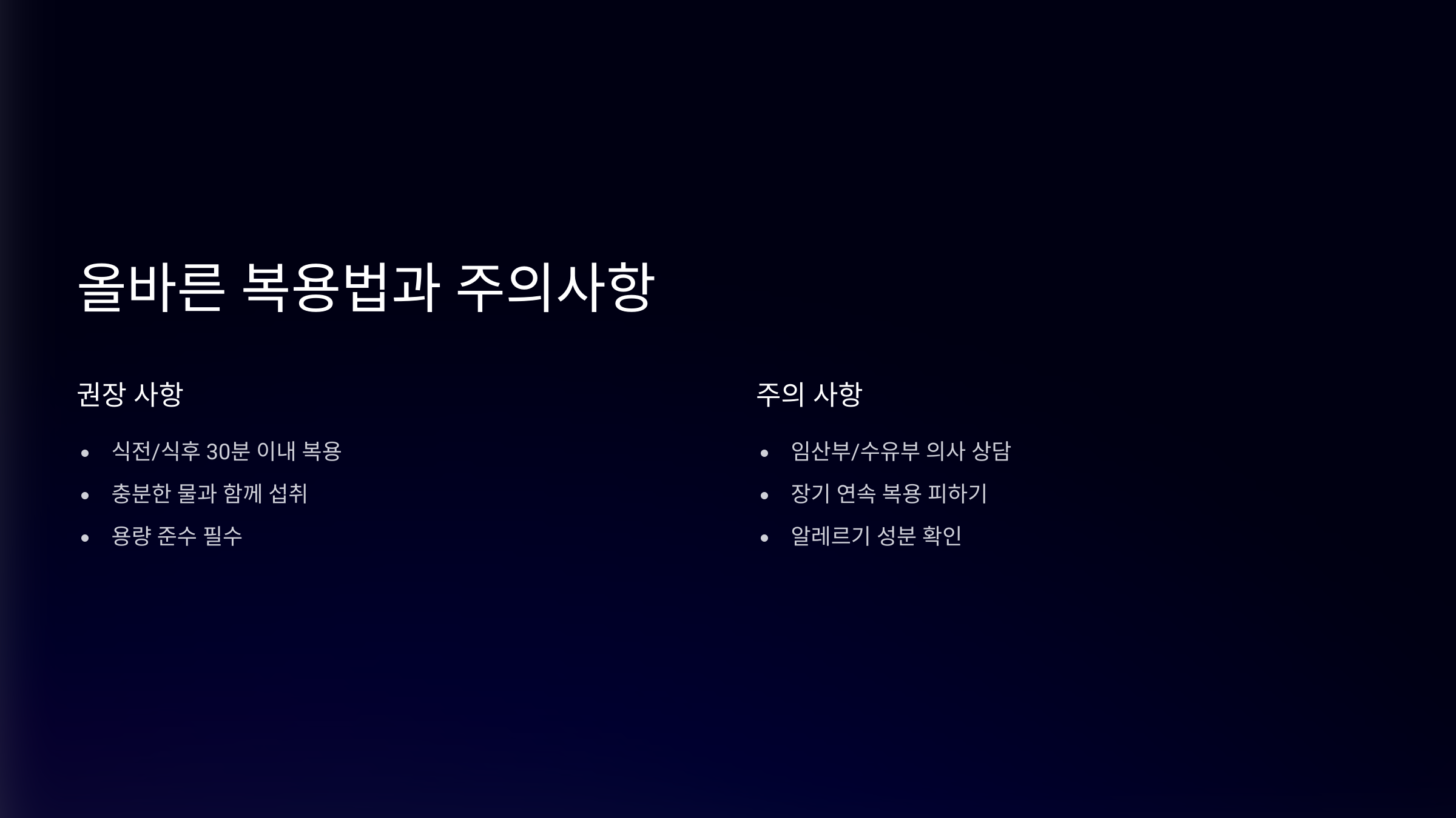 A8. 즉시 복용을 중단하고 증상을 관찰하세요. 가벼운 복부 불편감이나 설사는 용량을 줄이면 개선될 수 있어요. 하지만 두드러기, 호흡곤란, 심한 복통 등이 나타나면 즉시 병원을 방문해야 한답니다. 제품 포장을 가져가서 의사에게 보여주면 정확한 진단에 도움이 돼요.
