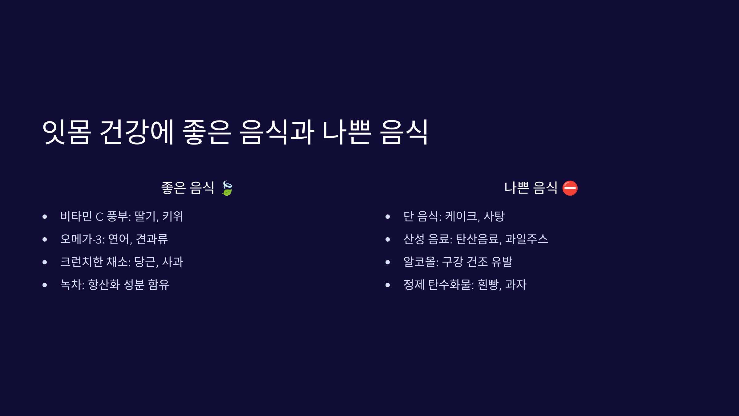 🍎 잇몸 건강에 좋은 음식과 나쁜 음식