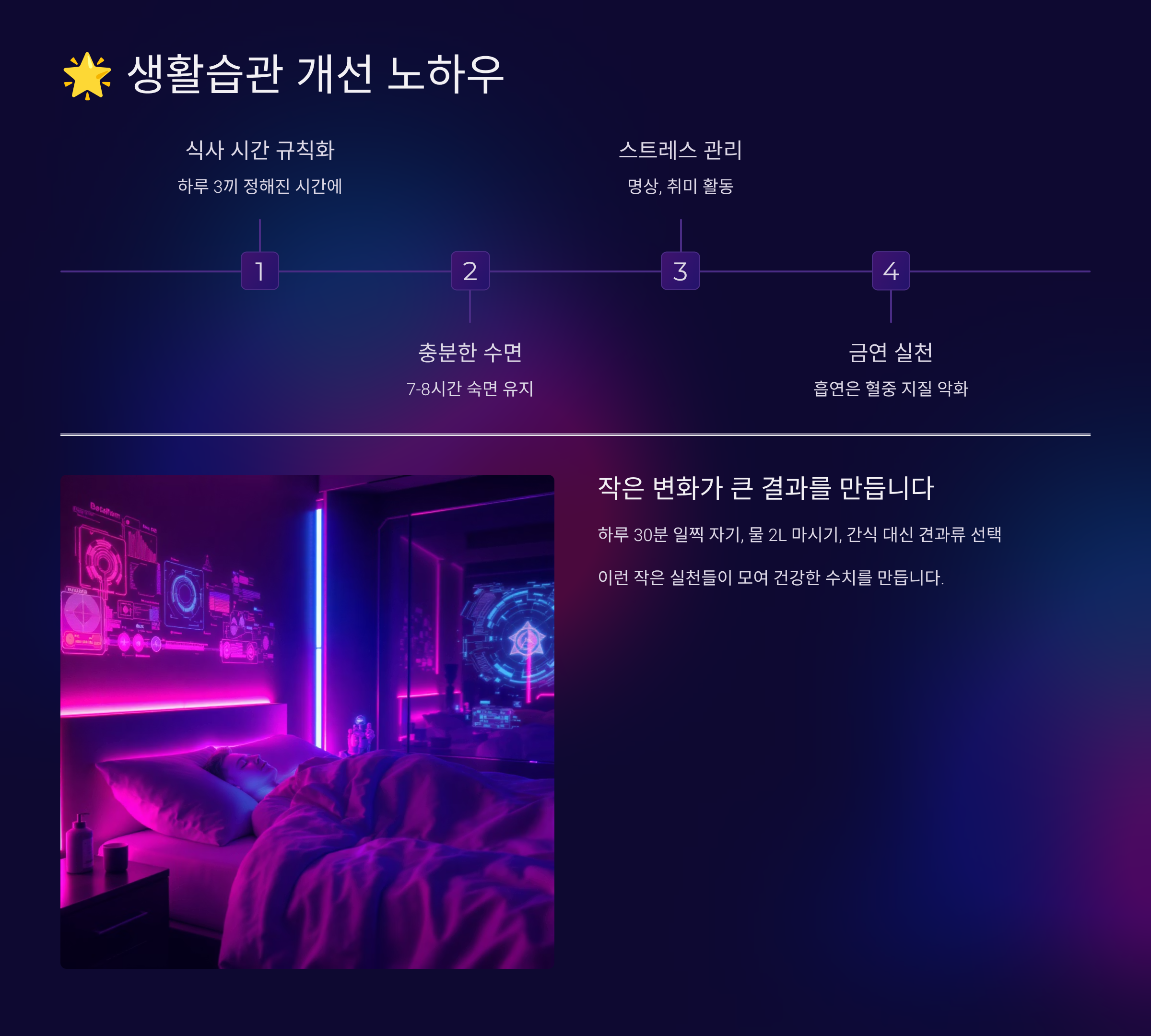 | 금주/금연 | 완전 중단 | 간 기능 개선 |