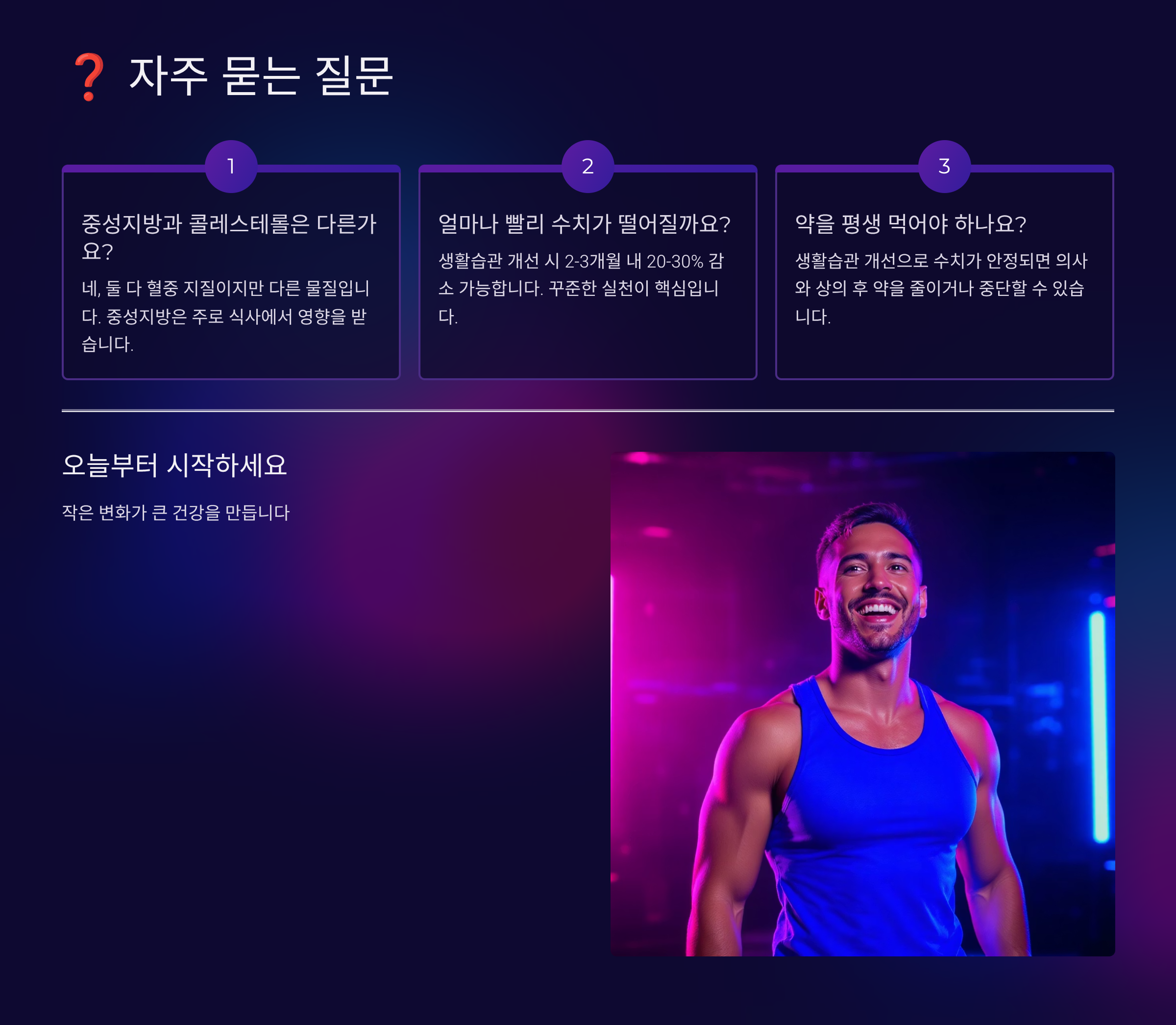 중성지방 관리는 단순히 숫자를 낮추는 것이 아니라 전반적인 건강과 삶의 질을 높이는 투자예요. 지금 시작하면 3개월 후 확실한 변화를 경험할 수 있습니다! 💪