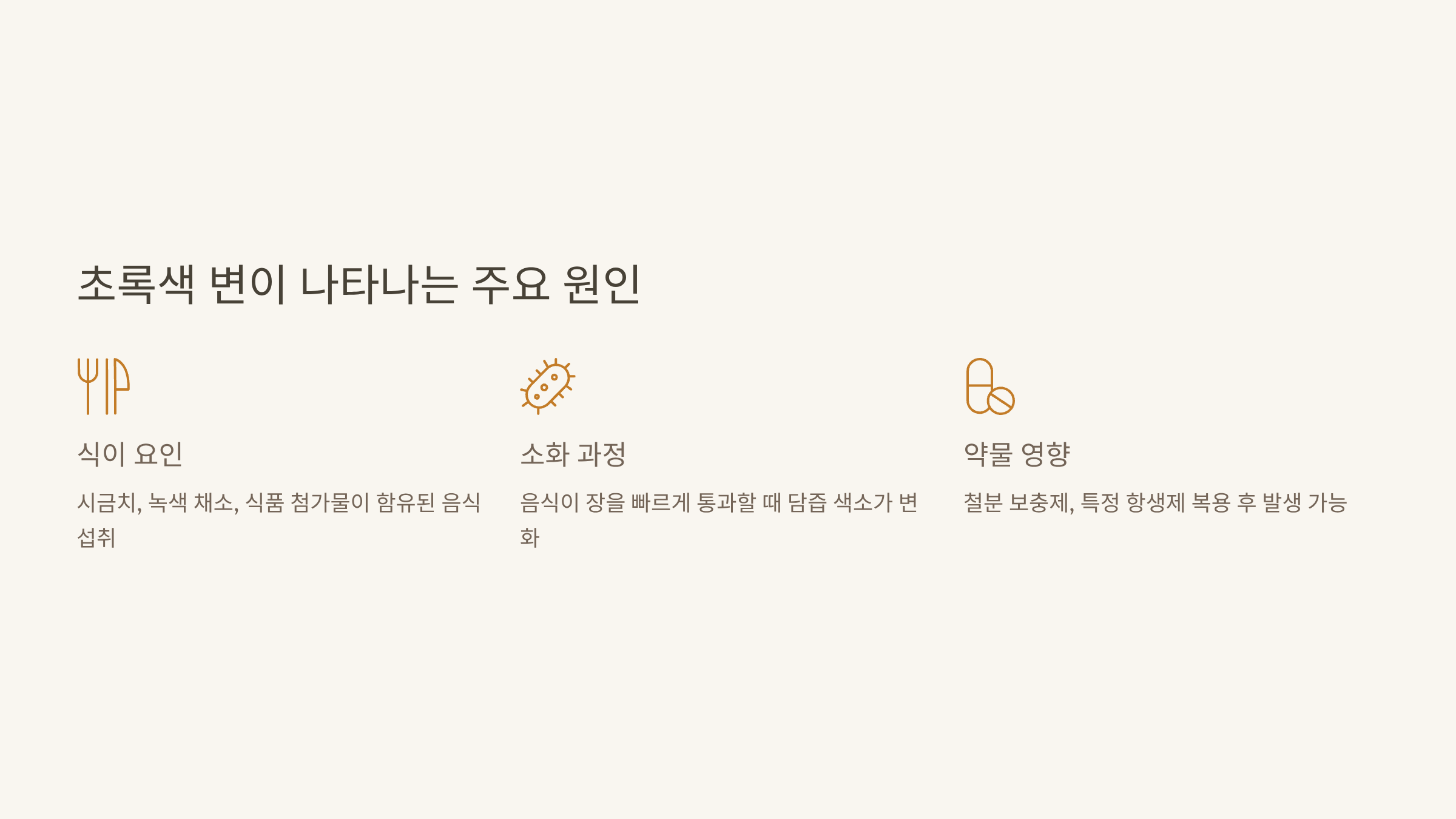 정상적인 변의 색깔은 갈색이지만, 우리 몸의 상태에 따라 다양한 색으로 변할 수 있어요. 초록색 변은 특히 담즙의 변화나 특정 음식물 섭취와 밀접한 관련이 있으며, 대부분의 경우 며칠 내에 자연스럽게 해결되는 경우가 많아요. 하지만 지속되거나 다른 증상이 동반된다면 전문가의 상담이 필요할 수 있답니다.