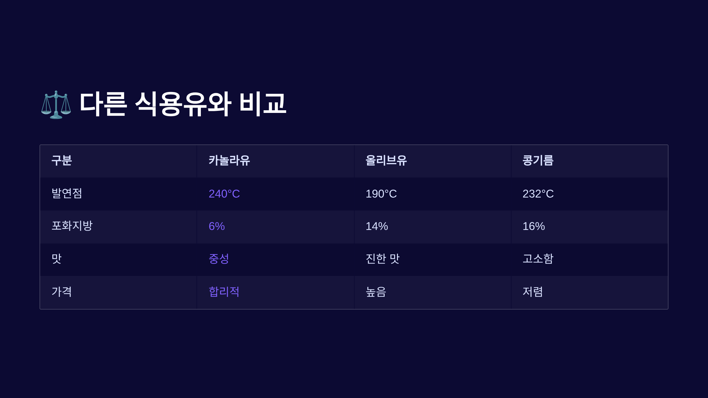 ⚖️ 다른 식용유와 비교 분석
