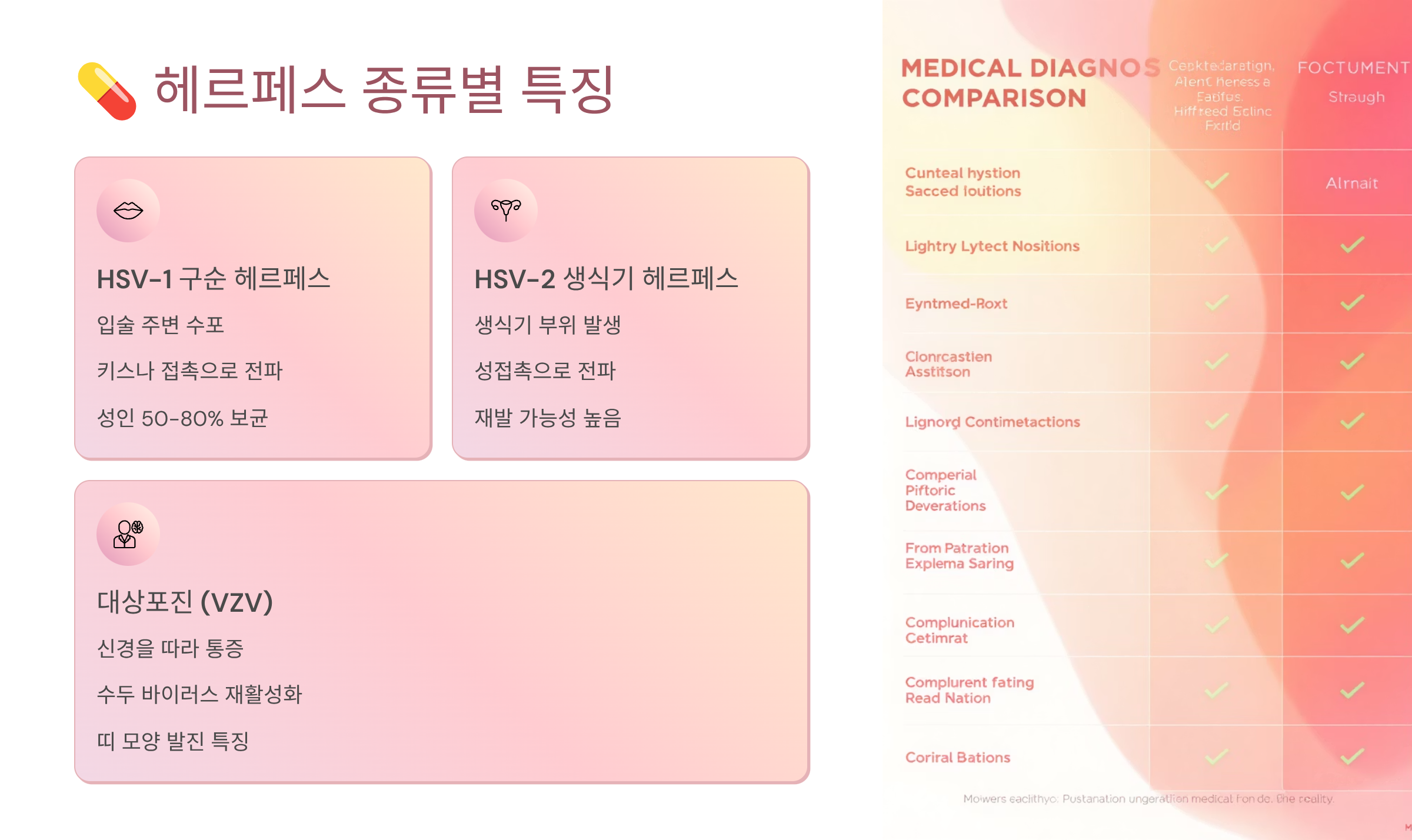 헤르페스 바이러스는 단순포진바이러스(HSV)라고 불리며, 주로 구강 헤르페스와 성기 헤르페스로 나뉘어요. 초기 증상을 빠르게 인지하고 대처하는 것이 중요한데, 오늘은 헤르페스의 다양한 증상과 효과적인 관리 방법에 대해 자세히 알아보도록 할게요. 특히 2025년 현재 새롭게 개발된 치료법과 예방법까지 함께 소개해드릴 예정이니 끝까지 읽어주세요! 😊
