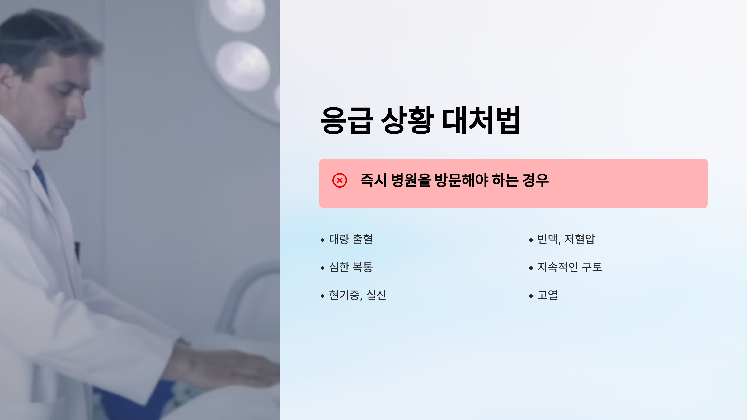 소량 지속 출혈 | 주의 | 당일 진료 |