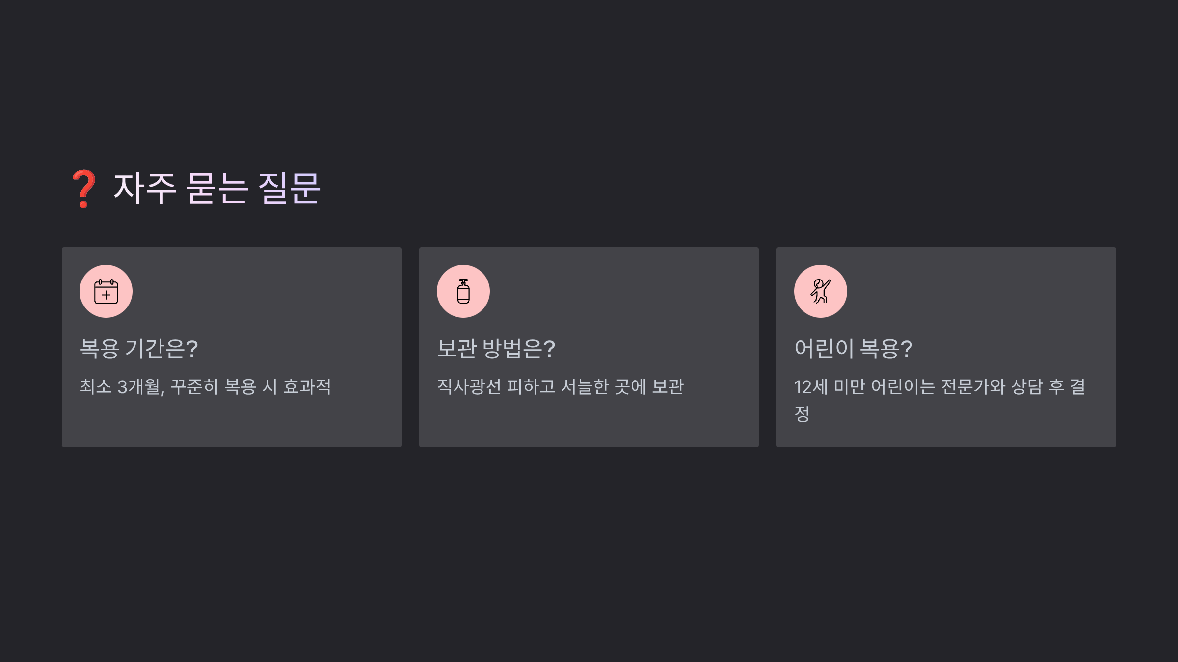 | MSM | 연골 생성 촉진 | 1,500~3,000mg/일 |